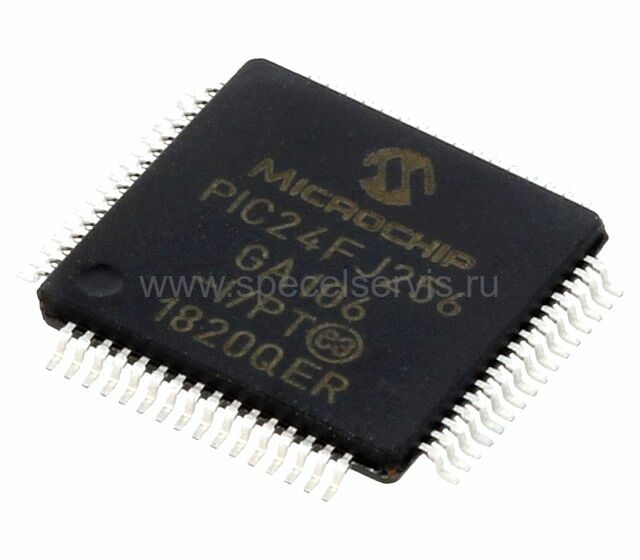 PIC24FJ256GA106-I/PT - 16-ти битный микроконтроллер линий передачи данных на базе ядра PIC с флэш-памятью 16/256 кб и тактовой частотой 32 мГц. Включает в себя сетевые интерфейсы, такие как: I2C, PMP, SPI, UART/USART.