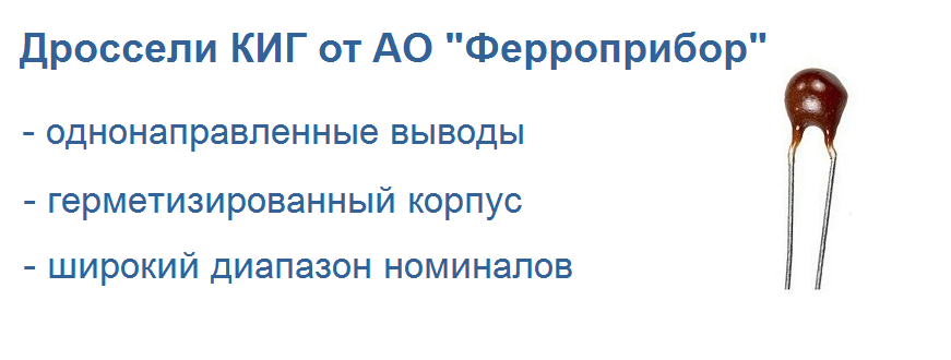 Производитель дросселей КИГ – АО «Ферроприбор» – отечественное предприятие, основанное в 1969 году и специализирующееся на производстве дросселей, СВЧ-компонентов, магнитодиэлектриков и приборов на их основе, в том числе фазовращателей, циркуляров, вентилей и фильтров. Предприятие обладает полным производственно-технологическим циклом выпуска СВЧ-приборов от изготовления пресс-порошка из оксидов металлов до испытания готового изделия. Разрабатываемая и выпускаемая предприятием продукция находит широкое применение в составе различных электронных приборов и устройств у отечественных и зарубежных потребителей.