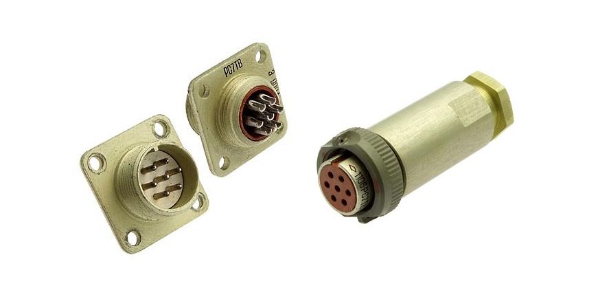 Разъемы цилиндрического типа с резьбовым соединением РС7ТВ, производства завода КОПИР, предназначаются для внутреннего монтажа в цепях постоянного, переменного и импульсного токов. Полный комплект соединителей состоит из вилки, монтируемой обычно на панель или на кабель, розетки, распаиваемой на кабель, и кожуха, навинчиваемого на розетку или вилку. Шпонка на корпусе вилки и соответствующий ей паз в розетке обеспечивают всегда правильное соединение электрических контактов разъема.