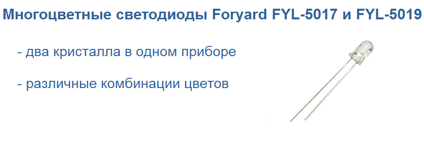 Интернет-магазин «Спецэлсервис» предлагает многоцветные двух- и трехвыводные светодиоды серий FYL-5017 и FYL-5019 соответственно.
