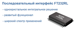 Микросхема FT232RL представляет собой универсальный асинхронный приемопередатчик (UART) и является высокоинтегрированным последовательным интерфейсом USB-COM.