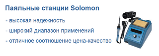 Паяльные станции Solomon выпускаются тайваньской компанией Sorny Roong Industrial, которая основана в 1975 году и специализируется на паяльном оборудовании. Высокотехнологичное производство обеспечивает отличное качество продукции по приемлемой цене. Паяльные станции Solomon, сертифицированные в Европе и России, продаются практически во всех частях света. Сертификация...
