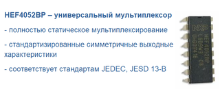Микросхема HEF4052BP представляет собой коммутатор цифровых и аналоговых сигналов (мультиплексор/демультимплексор).