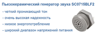 Пьезокерамические генераторы звука SC0715BLF2 производятся по самой передовой технологии и считаются наиболее надежными для промышленного применения. В зуммерах серии используется специально отформованная мембрана с изогнутым краем, которая особым образом фиксируется и вклеивается в корпус. Корпуса генераторов ударопрочны, а также пыле- и влагонепроницаемы...