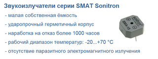 Акустические излучатели серии SMAT, производимые бельгийской компанией Sonitron, представляют собой пьезокерамические преобразователи звуковых сигналов с широкими возможностями применений. Они отвечают различным требованиям разработчиков аппаратуры, таким как уровень звукового давления, размеры, способы монтажа и подключения. Все эти параметры варьируются от модели к...