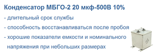 МБГО-2 – металлобумажные однослойные герметизированные уплотнённые конденсаторы постоянной емкости. МБГО-2 предназначены для работы в цепях постоянного, пульсирующего и переменного токов. Они используются для формирования мощных импульсов тока разряда в нагрузке, обладают высокой энергоемкостью.