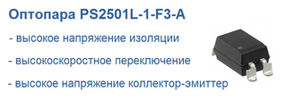 Микросхема PS2501L-1L-F3-A представляет собой оптопару, содержащую светоизлучающий диод из арсенида галлия и кремниевый n-p-n-фототранзистор. PS2501L-1L-F3-A выпускается в пластиковом корпусе с выводами "крыло чайки" для поверхностного монтажа.