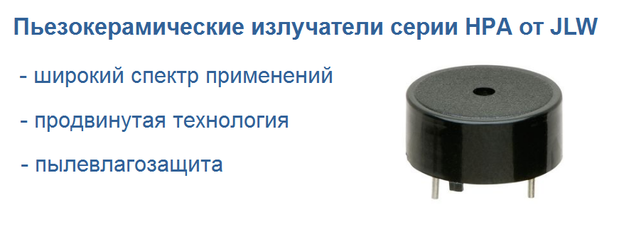 В интернет-магазине "Спецэлсервис" представлена серия пьезокерамических излучателей звука серии HPA от компании JL World. Вы можете приобрести их по разумной цене с доставкой по России.