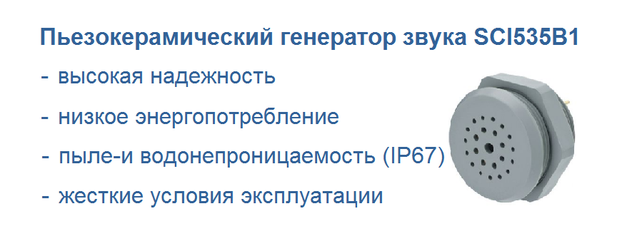 SCI535B1 – пьезокерамические генераторы звука общего назначения, способные при низком напряжении питания излучать громкие сигналы.