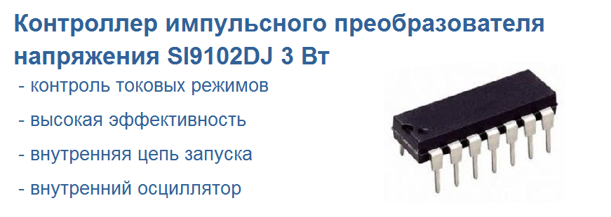 Высоковольтный импульсный преобразователь SI9102DJ представляет собой интегральную схему, которая содержит большинство компонентов, необходимых для реализации высокоэффективного преобразователя постоянного тока мощностью до 3 Вт. Он может работать либо от низковольтного источника постоянного тока, либо напрямую от нерегулируемого источника постоянного тока напряжением 10...120 В.