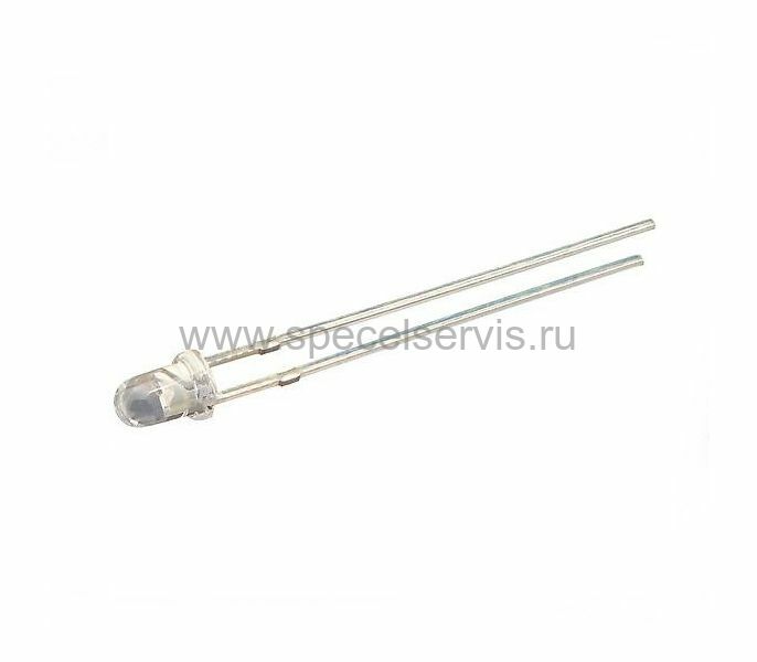 Светодиод 3мм, супер яркий белый, бесцветная линза, 6000 мКд, 25