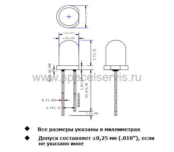 - Температура пайки выводов: 260°С в теч. 5 сек.