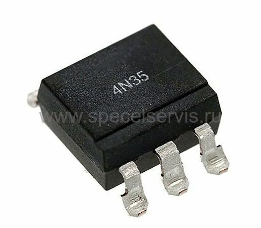4N35-500E – одноканальная оптопара (оптрон), она имеет транзисторный выход постоянного тока с выводом базы, состоящая в корпусе SMD-6. Оптроны состоят из инфракрасного светодиода на входе, и фоточувствительного n-p-n-транзистора на выходе. Друг от друга модели этого семейства отличаются коэффициентом передачи по току и среднеквадратичным напряжением изоляции (RMS), которое равно 3,55 кВ. Оптопары предназначены для передачи сигналов между цепями с различными импедансами и применяются в приборах для обнаружения сети переменного тока, в герконовых реле, переключателях режима обратной связи цепей питания, схемах обнаружение вызова в телефонах, развязках по общему проводу и т.д.