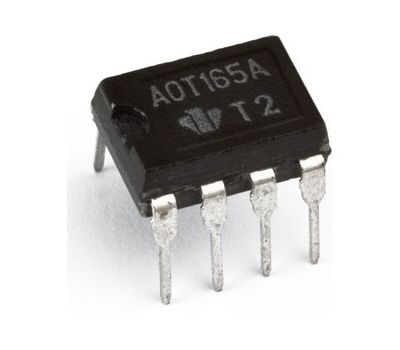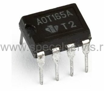 АОТ165А - сдвоенная оптопара с транзистором Дарлингтона. Данное устройство состоит из кристаллов инфракрасного AsGaAl светодиода и кремниевого составного n-p-n фототранзистора. Кристаллы расположены в одной плоскости, оптически связаны полусферическим световодом. Такая конструкция обеспечивает отсутствие полевых утечек при длительном приложении Uиз, а внутренние межсоединения выполнены золотой проволокой. Выпускается в 8-ми выводном пластмассовом корпусе с двухсторонним расположением выводов для монтажа в отверстия печатных плат.