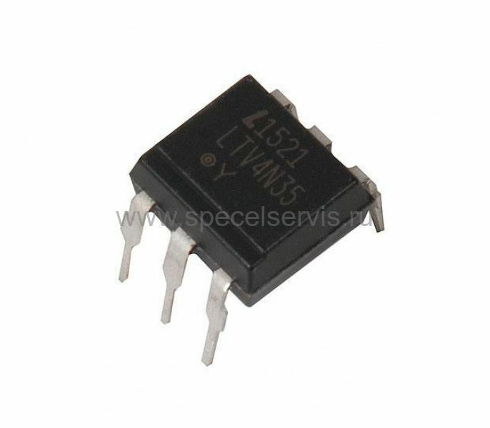 Микросхема LTV4N35 от компании Liteon в корпусе DIP-6 представляет собой недорогую универсальную одиночную оптопару (оптрон) общего назначения. Оптроны состоят из инфракрасного светодиода на входе, и фоточувствительного n-p-n-транзистора на выходе. Друг от друга модели этого семейства отличаются коэффициентом передачи по току и среднеквадратичным напряжением изоляции (RMS), которое равно 3,55 кВ для 4N3. Оптопары предназначены для передачи сигналов между цепями с различными импедансами и применяются в приборах для обнаружения сети переменного тока, в герконовых реле, переключателях режима обратной связи цепей питания, схемах обнаружение вызова в телефонах, развязках по общему проводу и т.д.