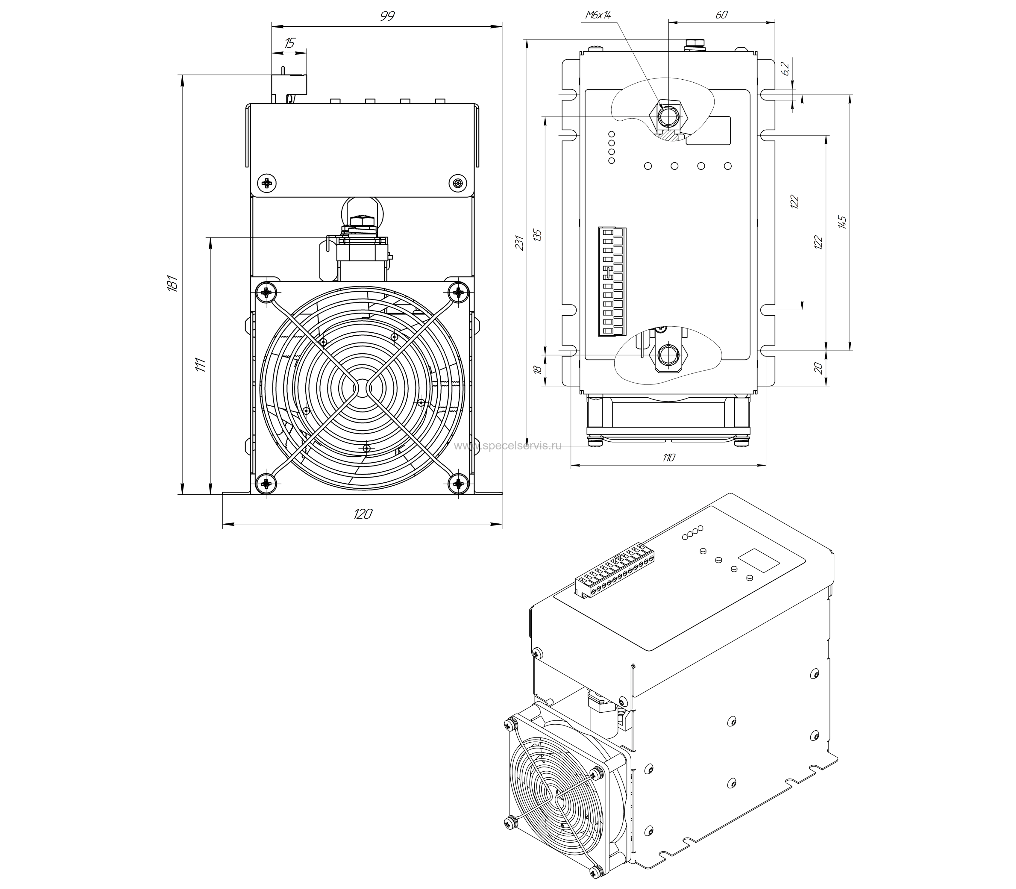 - управление - ток 4…20мА или 0…20мА, напряжение 0…5VDC, 0…10VDC, RS-485, переменный резистор или с панели управления,